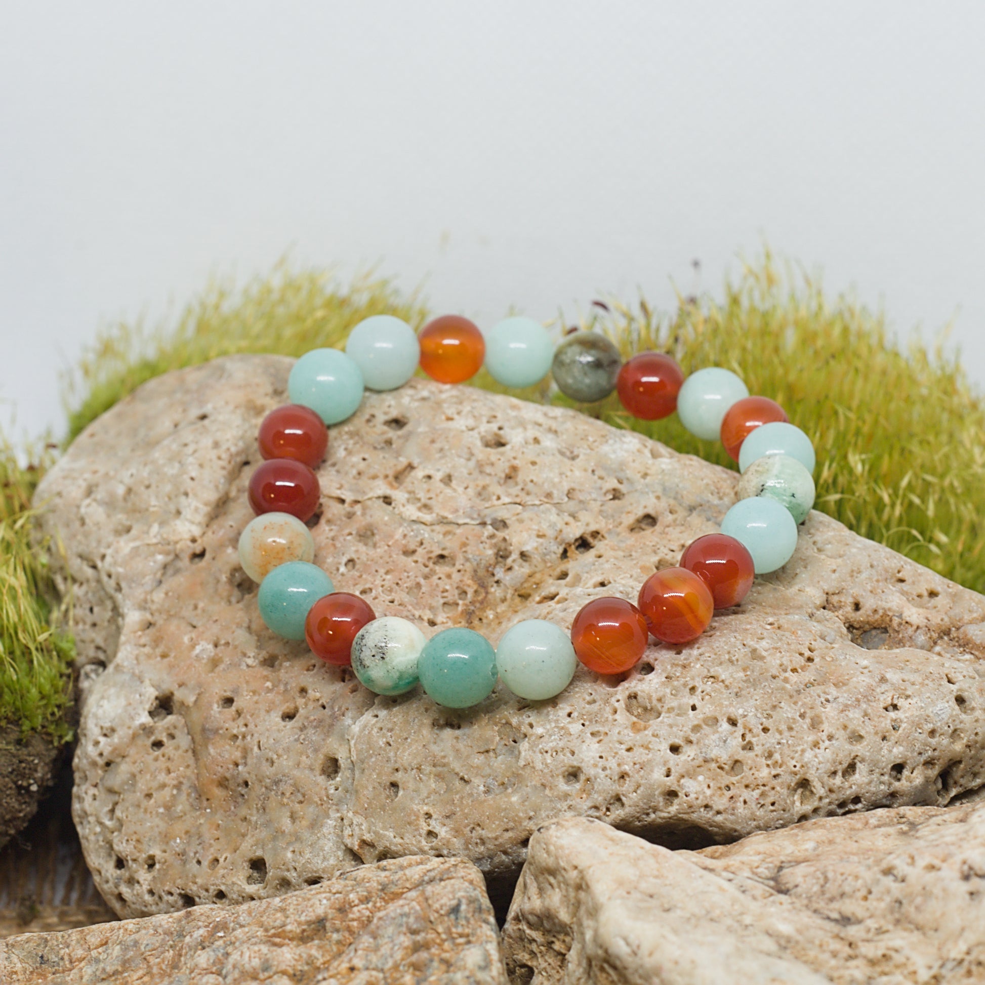 Карнеол, амазонит, черешов кварц, калцит.