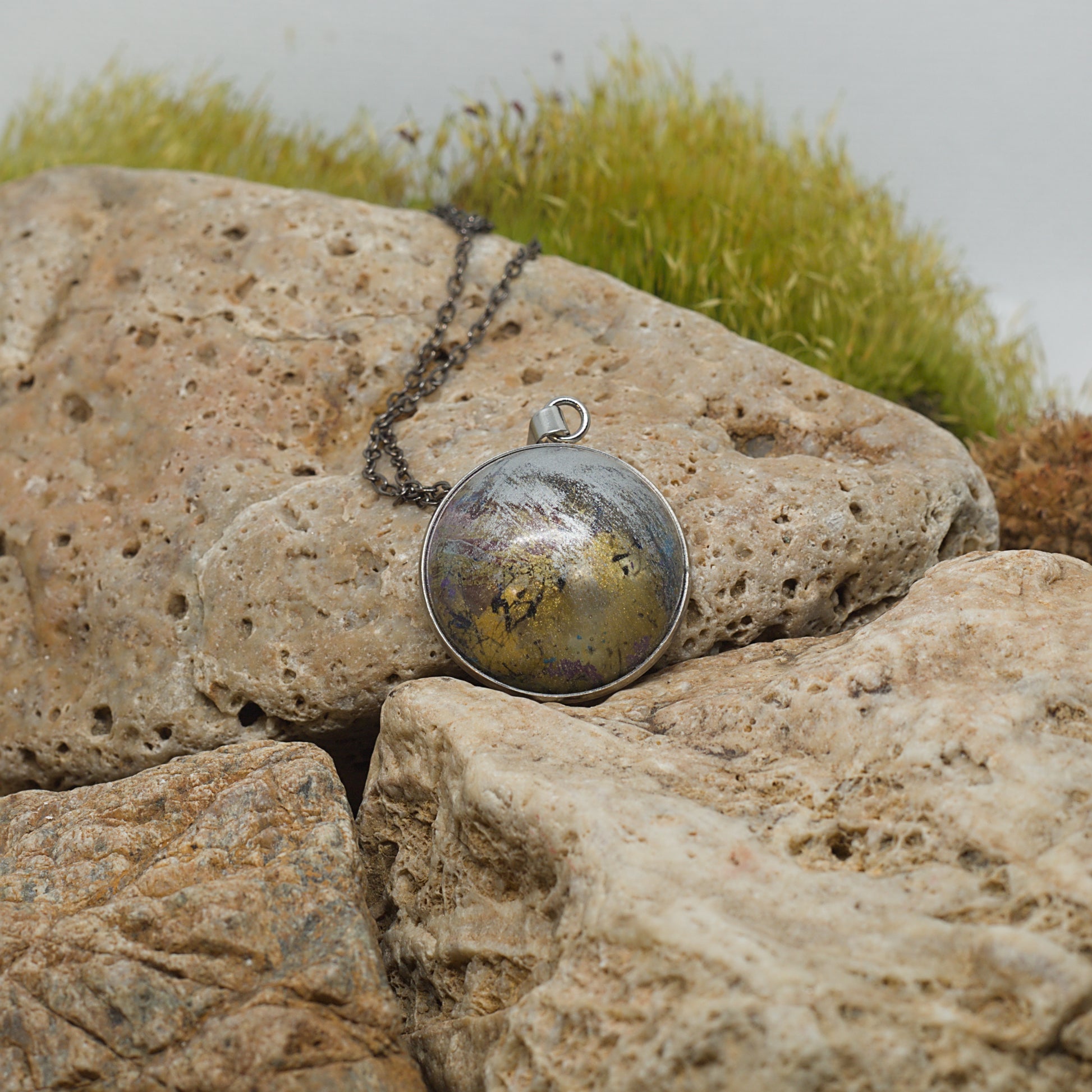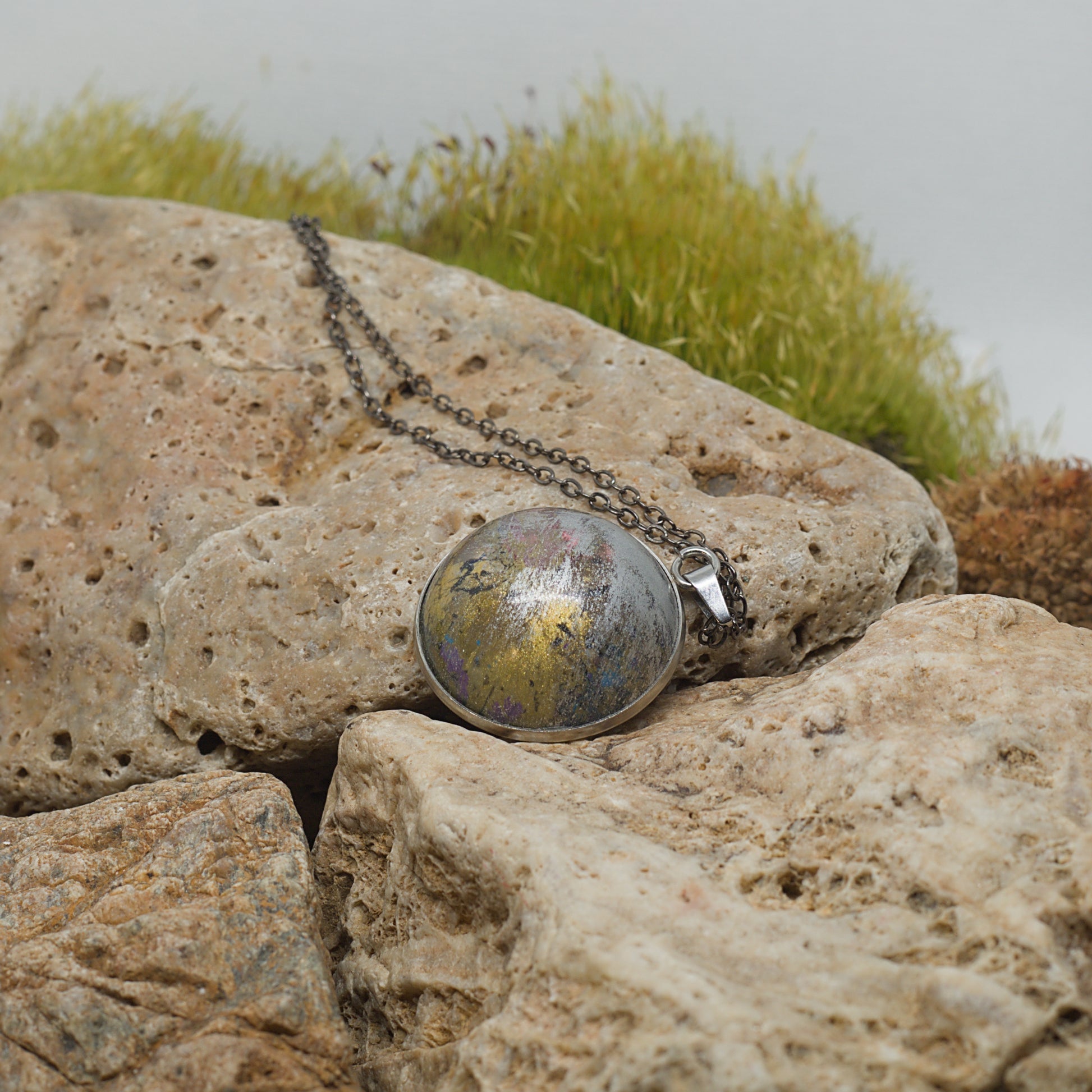 Елегантно колие с кръгла форма и здрава метална основа, което подчертава изчистените линии и минималистичния дизайн. Перфектно за всеки ден или специални поводи, това колие се превръща в фин, но изразителен акцент, който допълва всяка визия.