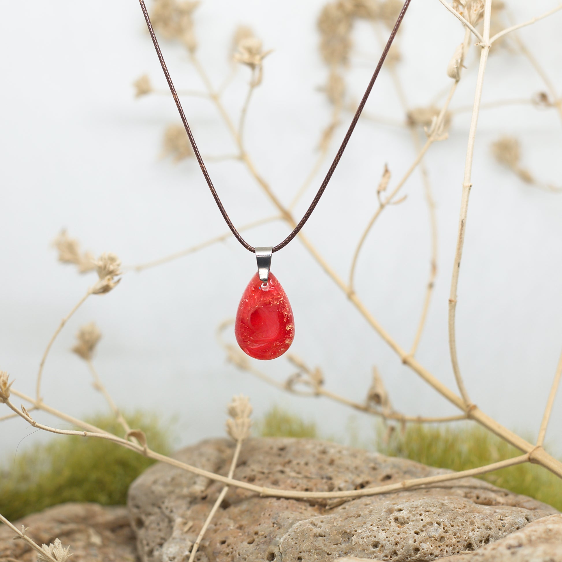 Колие с медальон в червено – динамичен и енергичен акцент, който привлича погледа.