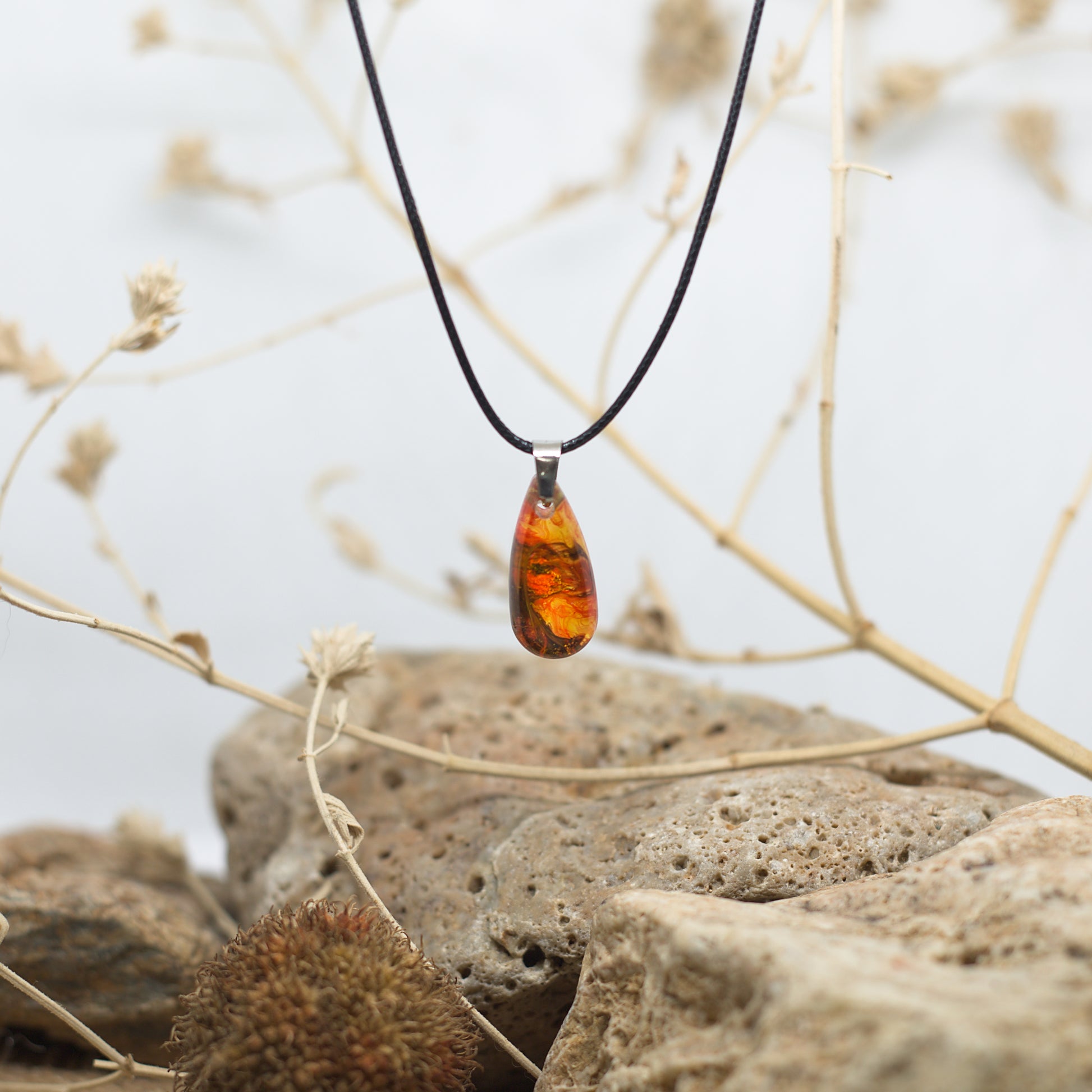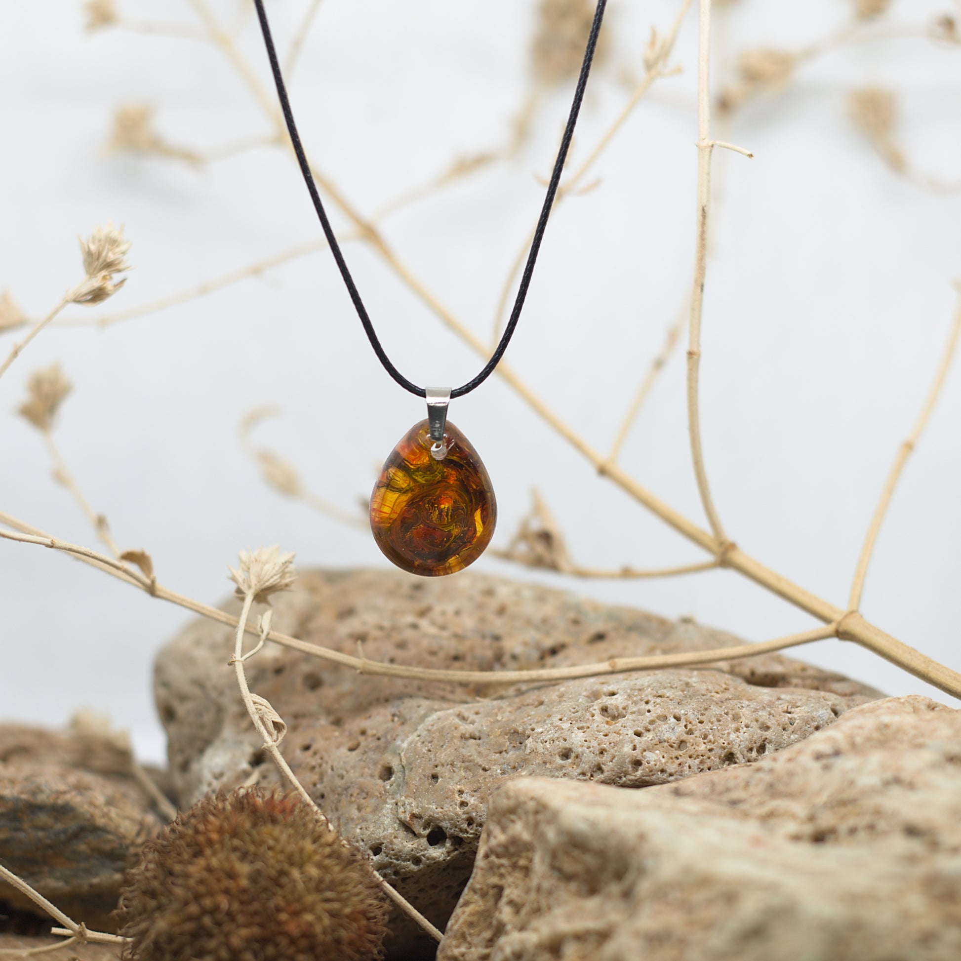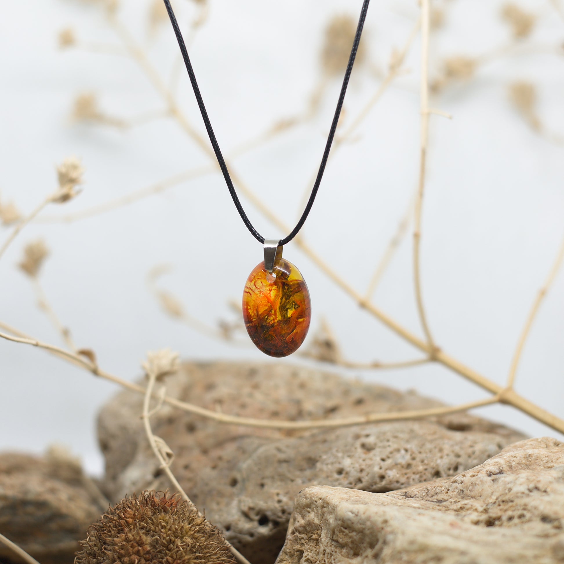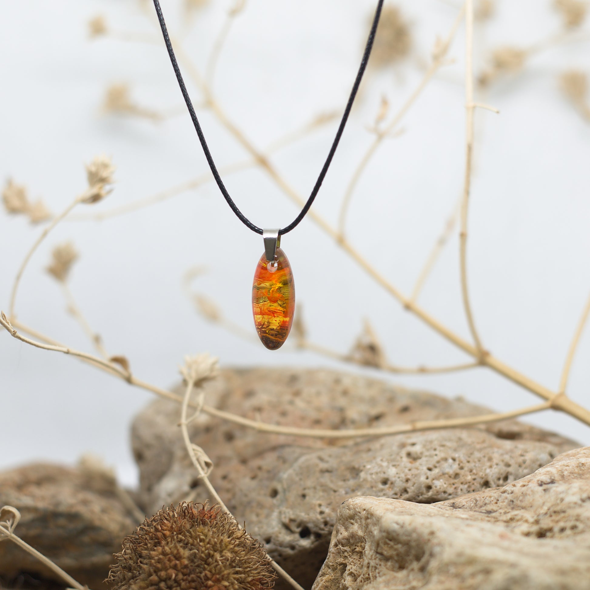 Колие с медальон в жълто с червени форми – ярка и динамична комбинация, която оживява с всяко движение.