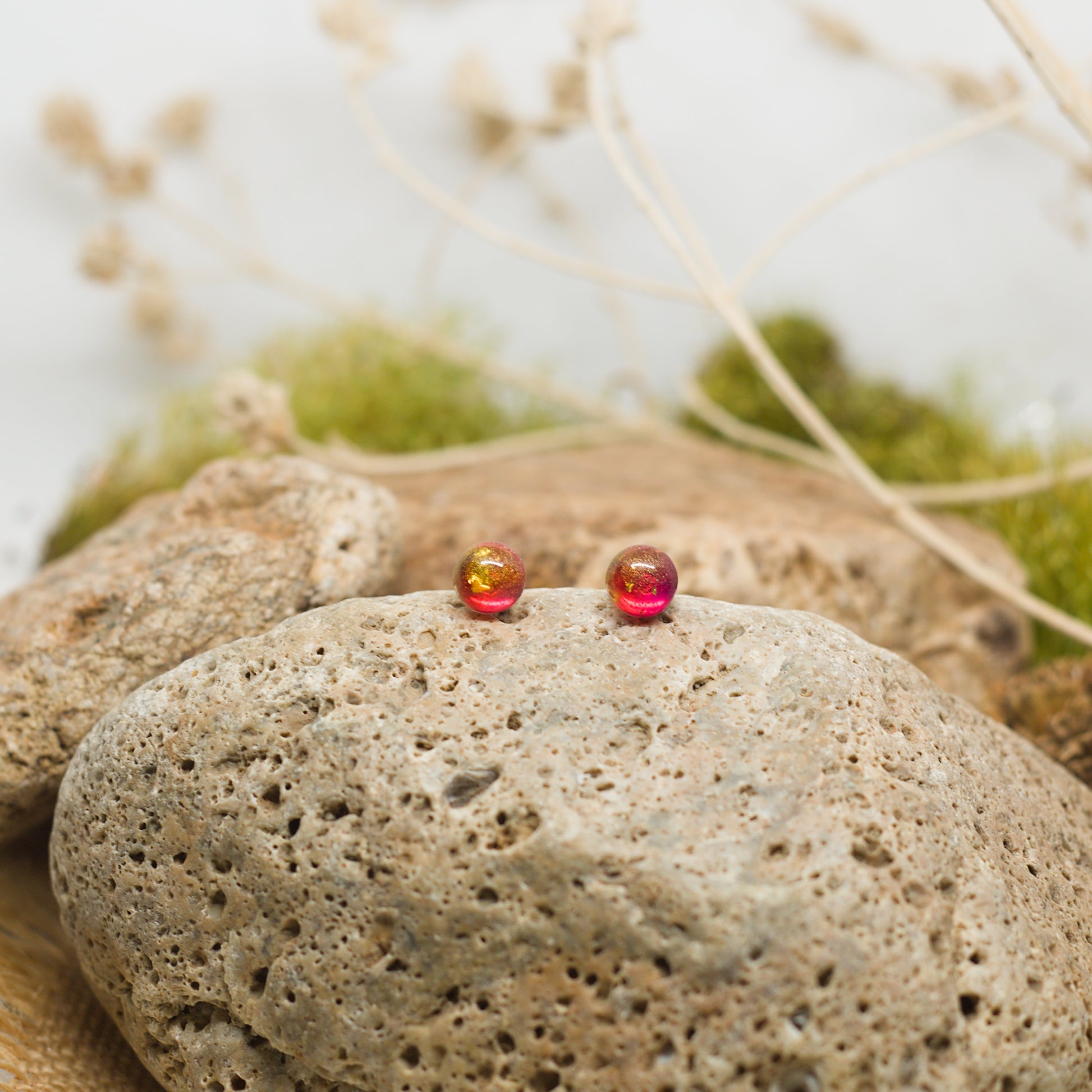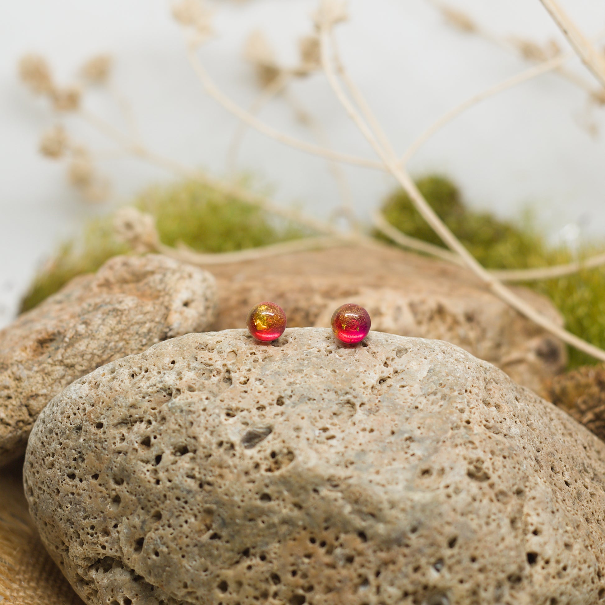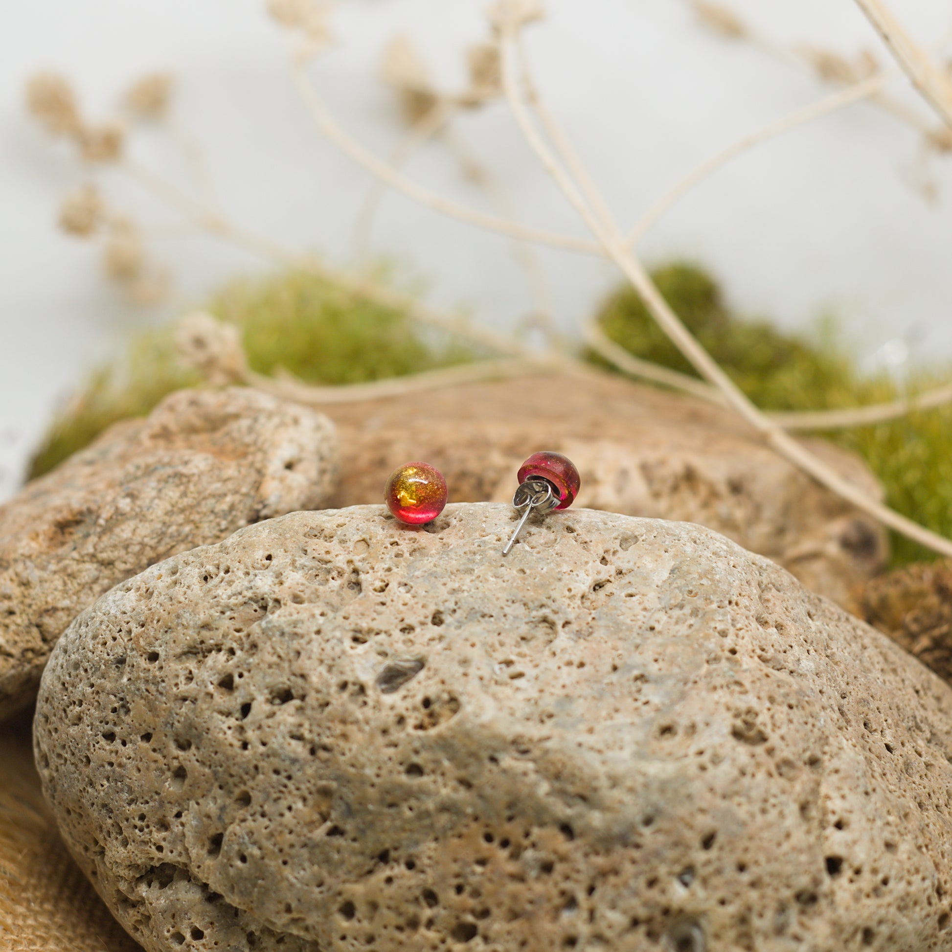 Малки нежни червени обеци на винт с фин блясък, които добавят елегантен акцент и сияние към всяка визия. Малки и деликатни, те стоят комфортно на ухото и носят настроение и индивидуалност, като малки капки светлина, които прикова вниманието.