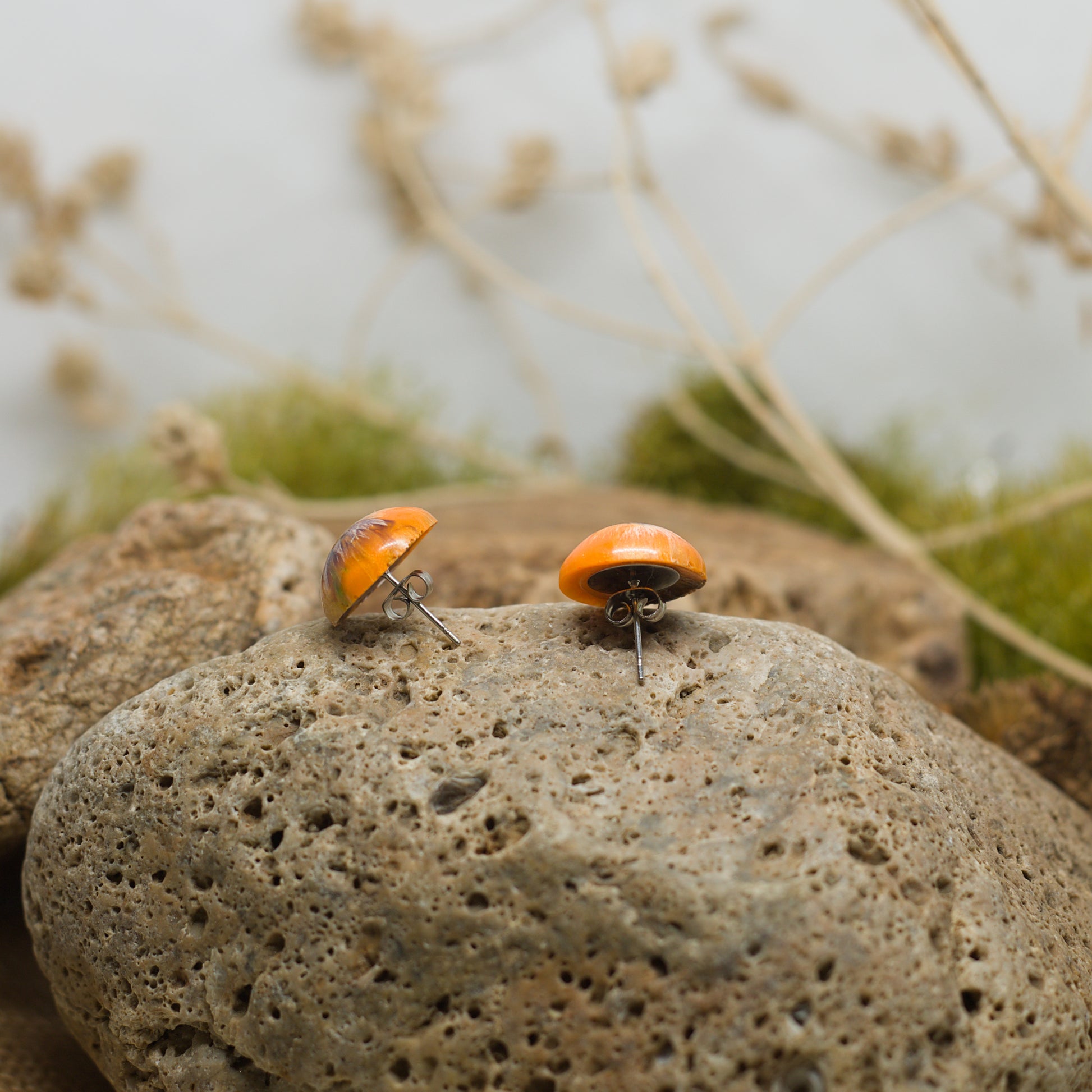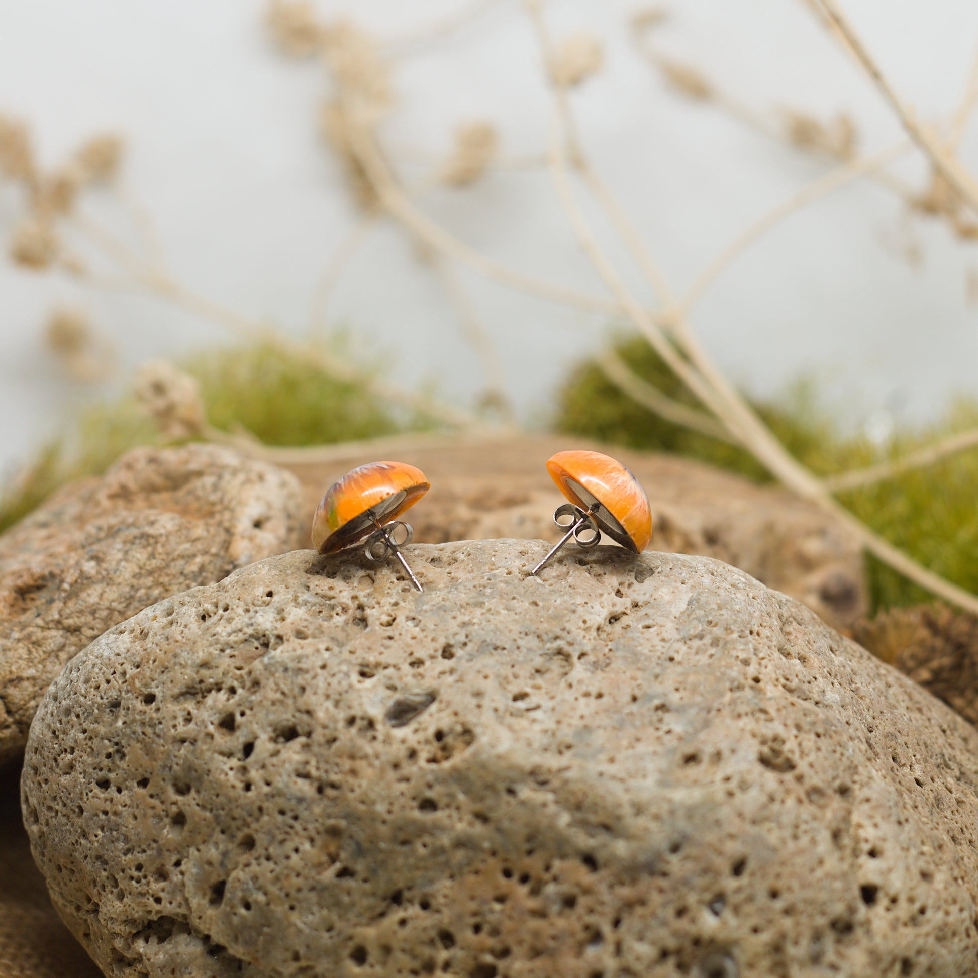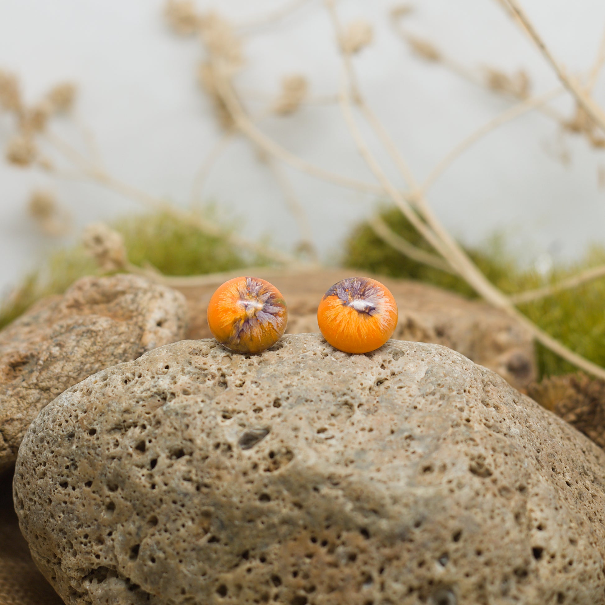 Нежни кръгли обеци на винт с перлен ефект в нежни оранжеви и лилави нюанси. Меките, блестящи цветове създават усещане за елегантност и свежест, като малък, изразителен акцент на ухото. Перфектни за ежедневието или за специални поводи, тези обеци добавят финес и настроение към всяка визия.